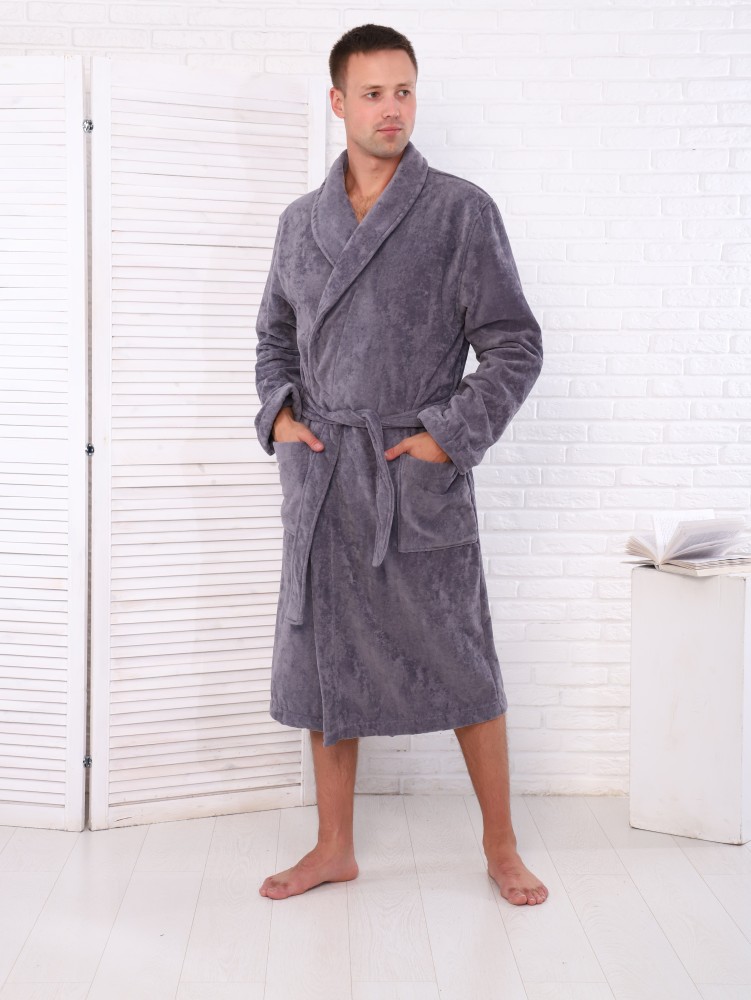 Халат велюр мужской махровый , цвет: 910-Серый, р-р 52