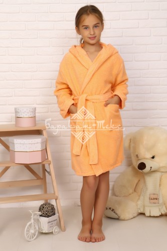 Халат детский махровый "Элит" с капюшоном, цвет: 028-Персиковый, р. 92/98