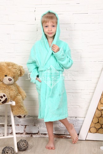 Халат детский махровый "Элит" с капюшоном, цвет: 501-Мятный, р. 128/134 2 СОРТ