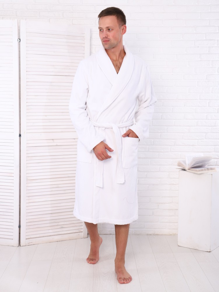 Халат велюр гостиничный махровый , цвет: 024-Белый, р-р 54 ПАКЕТ