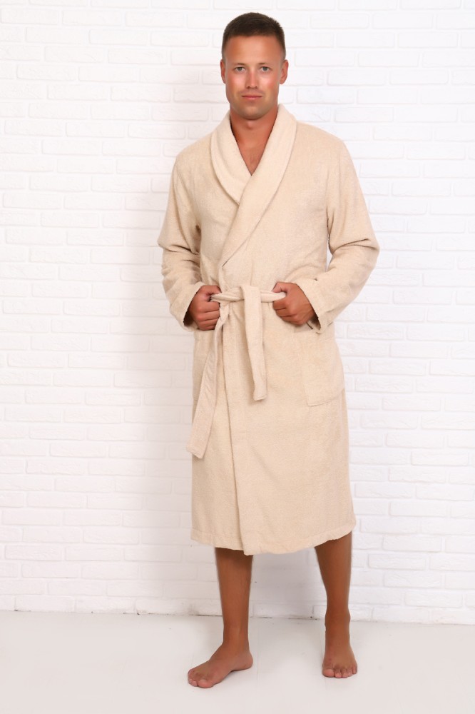 Халат мужской махровый "Элит" с воротником шалькой, цвет: 022-Бежевый, р-р 70